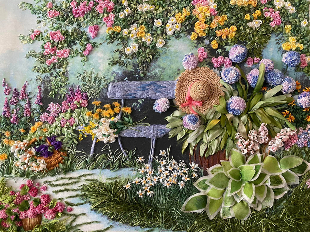 Hi, Good Morning stitching world! I have a lovely piece to show you by an exceptionally talented ribbon embroiderer Maha Chaya Zoueini from Lebanon, now living in Dubai.
