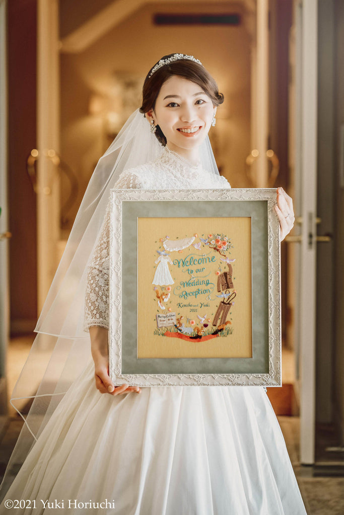 This stunning piece is an embroidered welcome board created by Yuki to commemorate her own marriage. Don't you just love her idea for a wedding?