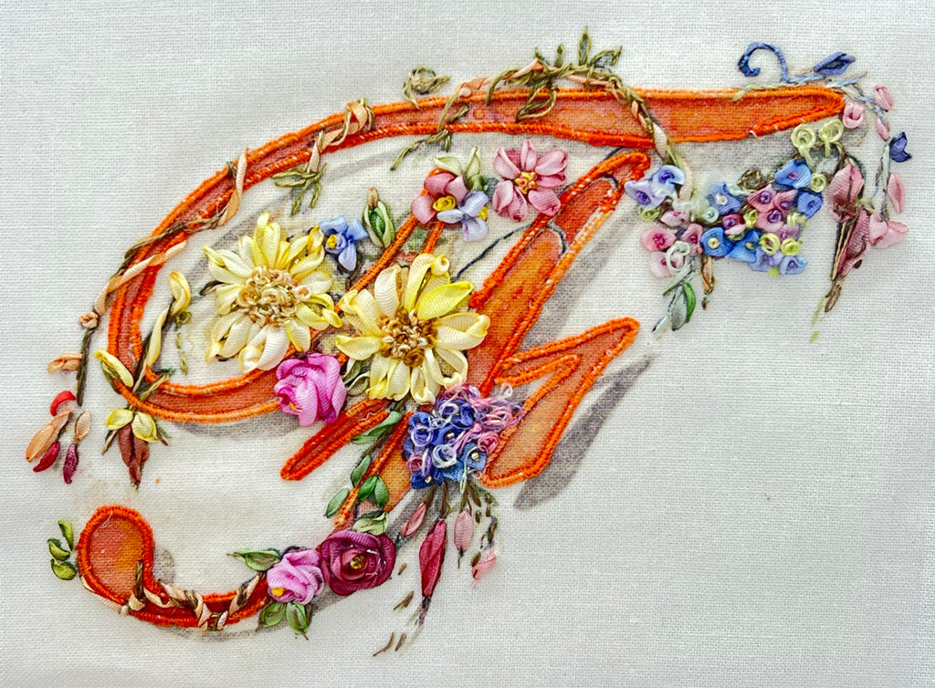 I love the colours that she chose to embellish the panels that I made for my Monogram book. If you want to embroider a monogram (printed in colour onto cotton fabric) for a special occasion, scroll down here until you find the letters...