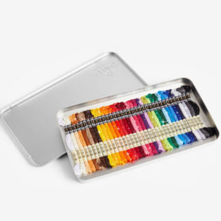 The ultimate gift for any crafter, the beautiful tin contains the entire range of DMC sparkly stranded cotton thread. Stamped with the DMC logo, this special tin also comes with two cross stitch and embroidery patterns.