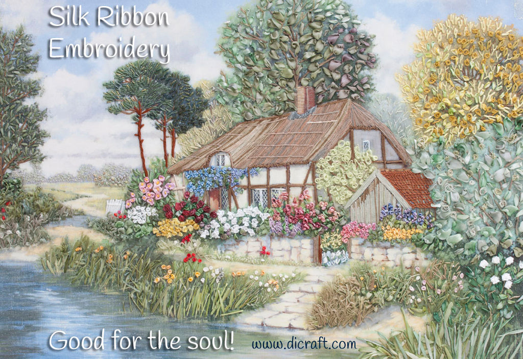 It is advisable to work from the top of the picture downwards, from left to right if you are right-handed and from right to left if you are left-handed. This way, the ribbon stitches are not damaged by hard working hands!