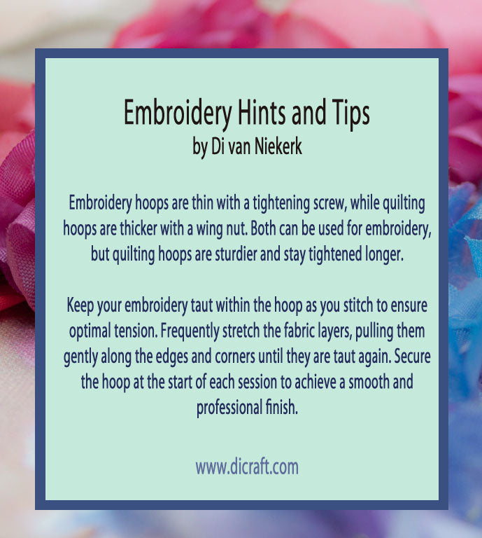 Keep your embroidery taut within the hoop as you stitch to ensure optimal tension. Frequently stretch the fabric layers, pulling them gently along the edges and corners until they are taut again. Secure the hoop at the start of each session to achieve a smooth and professional finish.