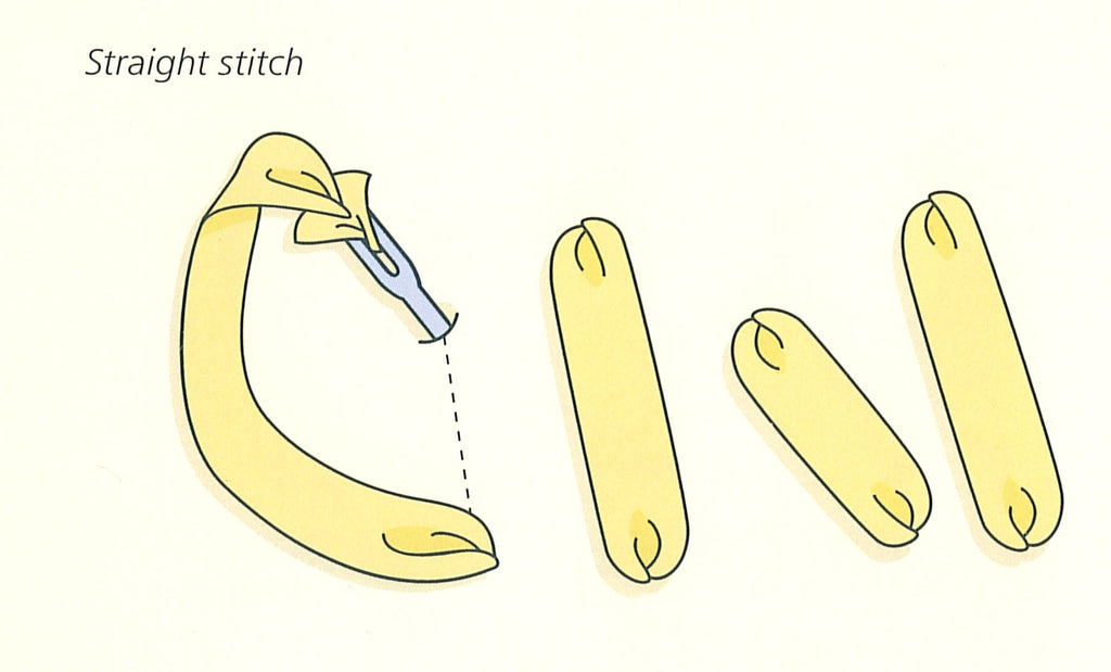 Straight stitches, worked with ribbon in different lengths, are ideal for making stems, blades of grass and thin, pointed leaves.