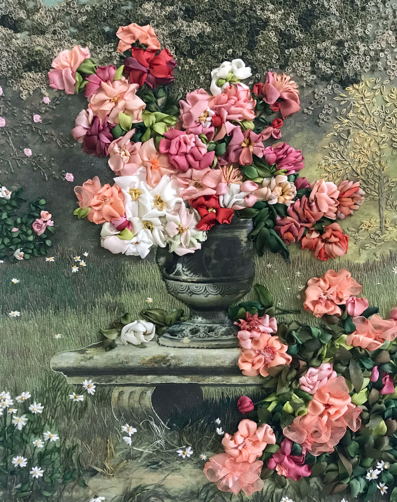Box Full of Lessons 4 – Peonies and Roses in Silk Ribbon Embroidery This lovely piece is by the super-talented Joyce Solichin from Jakarta, Indonesia. Don’t you love this beautiful scene? Stunning! . . Peonies and Roses is a prefect project for anyone wishing to learn the art of ribbon embroidery. I wrote the lessons, step-by-step, for the complete beginner and you will receive it all in a lovely...