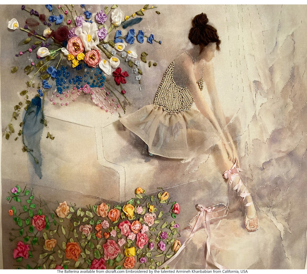 The lovely Ballerina in Silk Ribbon Embroidery by Armineh Khanbabian from CaliforniaDon't you just love this lovely piece? I asked Armineh to write a little about herself and this is what she wrote: Hi Di, I am a retired educator who saw a beautifully framed embroidery on a colleague’s wall. In 2014 my friend introduced me to Mania BADMAGRIAN, the master and great teacher who lit the love of embroidery in...
