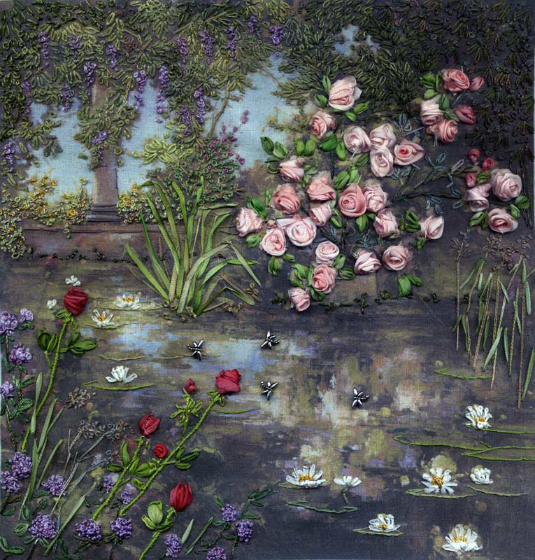 Don’t you love this beautiful garden scene? Titled Juliet’s Garden, it was embroidered by the talented Edith Bloecher from Germany. Don’t you wish you were there? I just LOVE her dragonflies...https://www.instagram.com/p/CSrp1AatFO1/ With silk ribbons from the Di van Niekerk range, I love how Edith used colour and simple stitches like ribbon stitch, folded ribbon roses, French knots, stem stitch, detached chain, amongst others, to create her masterpiece. You can learn...