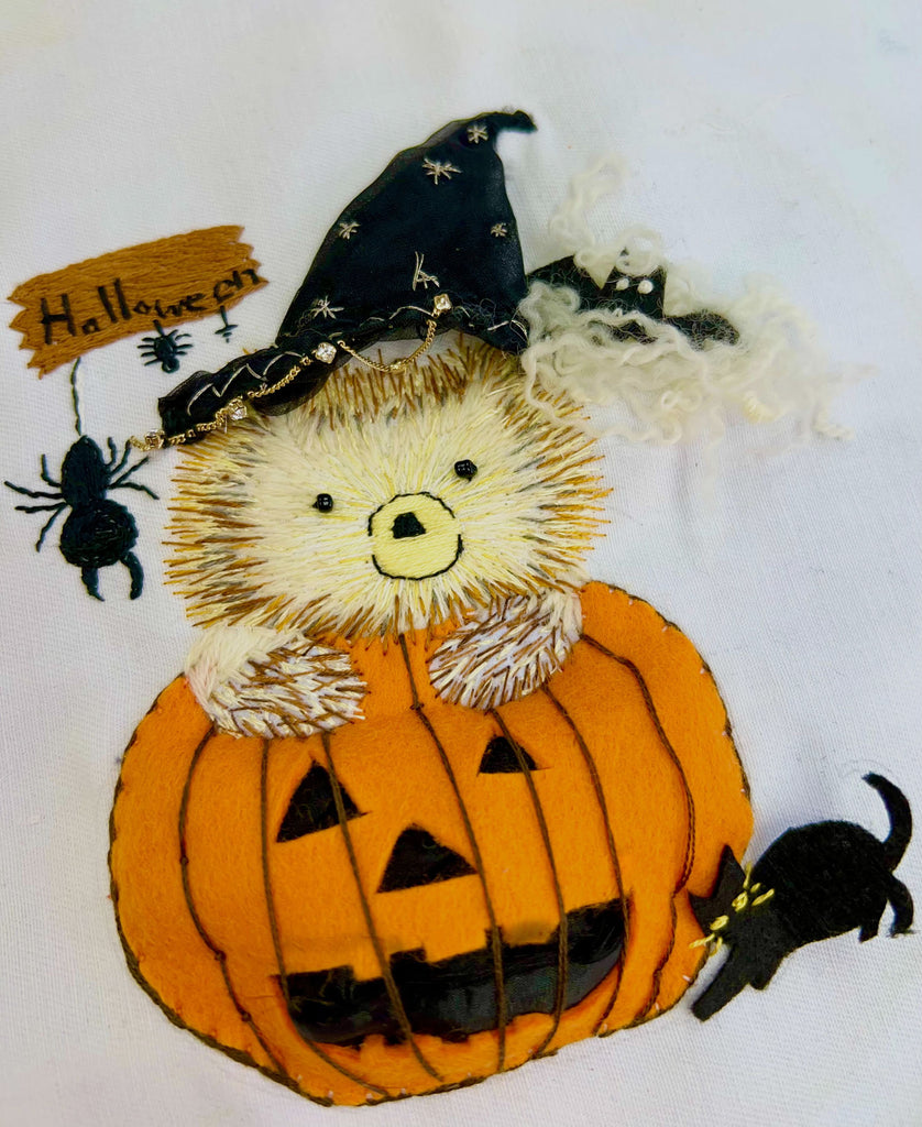 Good morning! I have something really cute to show you just in time for Halloween! Embroidered by Kwok Wing Sum (Happy) who lives in Tsuen Wan, Hong Kong. Kwok Wing Sum wrote to me, and to everyone who will be celebrating Halloween tomorrow: “Hello everybody, I embroidered this hedgehog ^^ Happy Halloween ^^ I wish you a Happy Halloween ^^ ….. and this is what Kwok Wing Sum made!...