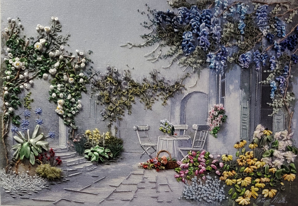 Hello from a hot and sunny Cape Town! Today I want to show you something by a talented embroiderer who teaches classes in Conroe, Texas. I have known Leslee for many years and I love her style of work. Here is her rendition of Dream Patio and she wrote: "My neighbor couldn't resist it and immediately bought it from me!" I love the simplicity of this piece - the...