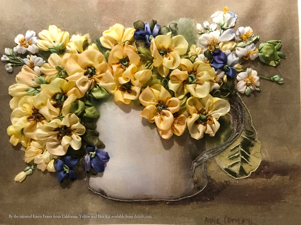 Silk Ribbon Embroidery ♪♫•*¨*•.¸ Happy Tuesday to you, stitching World! To brighten up your week here is a happy picture in happy colours. Don't you just love this lovely piece by Karen Fraser from California? Karen is a gifted teacher and she teaches at Piecemakers in Costa Mesa, California. This kit is from our Anne Cotterill range, have a look here if you are interested. Enjoy and have...