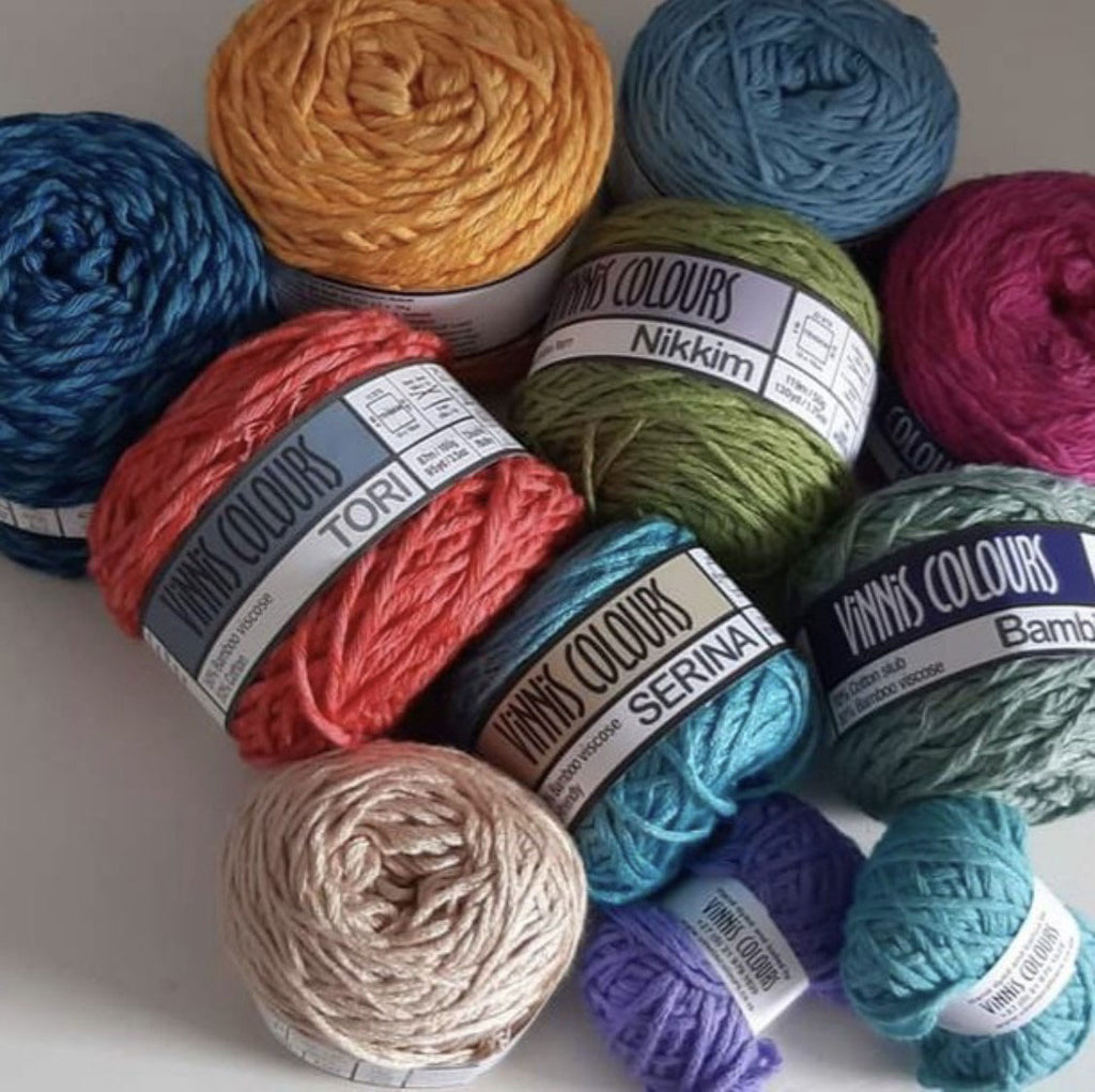 In 2004, Vinni Nielsen, a nurse and a native of Denmark and an avid knitter since childhood, started her business in South Africa. She soon realised that the South African yarn market was in dire need of a good range of coloured cotton yarn. She began to experiment with dyes in her kitchen and Vinni's Colours was born. Very quickly she needed to hire staff to skein and ball the yarns that were draped over her furniture and hanging up in the windows to dry. The business moved from the kitchen to the garden shed, where the yarn was dyed in baths. After 6 years she was finally able to move her rapidly expanding concern into its current premises, which is two factory buildings in Cape Town.